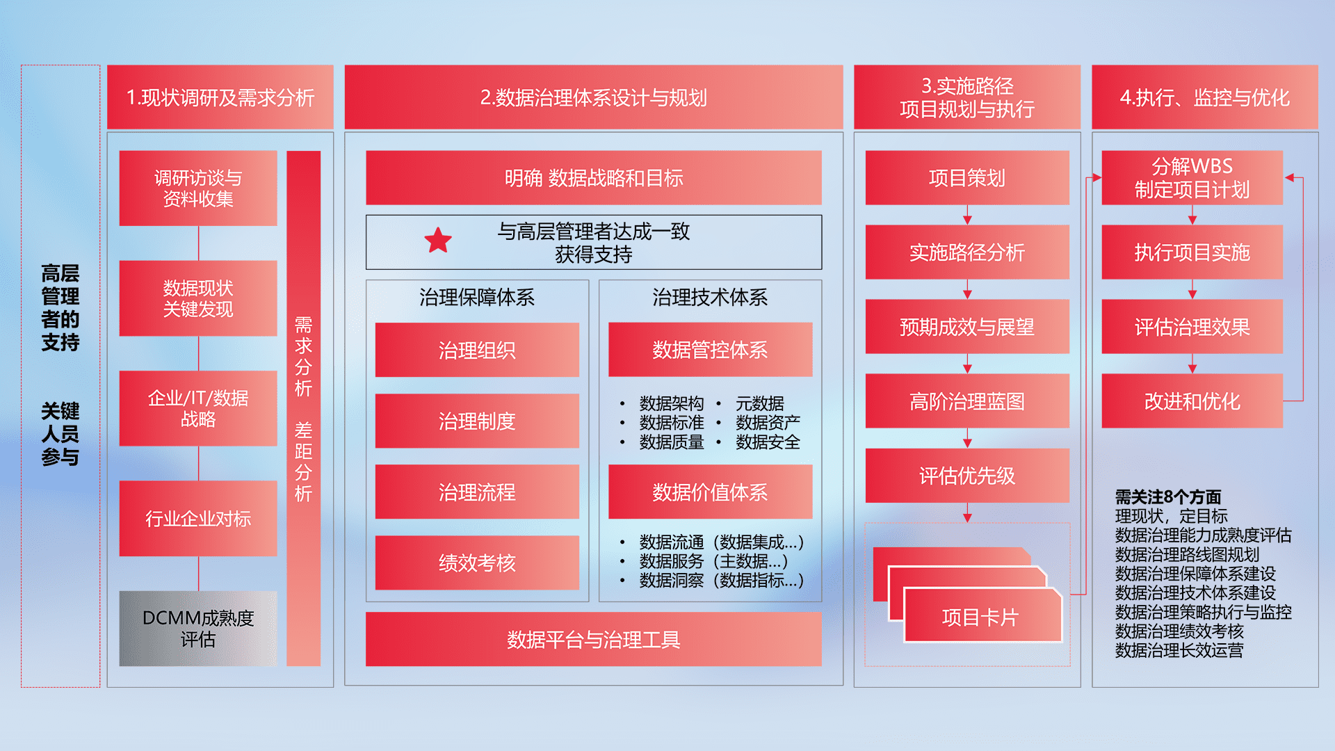 制定并执行统一的数据标准,,,规范数据定义和格式,,消除冗余和不一致性,,,,实现跨部门和跨系统的数据一致性,,为企业提供标准化的数据基础。。。。